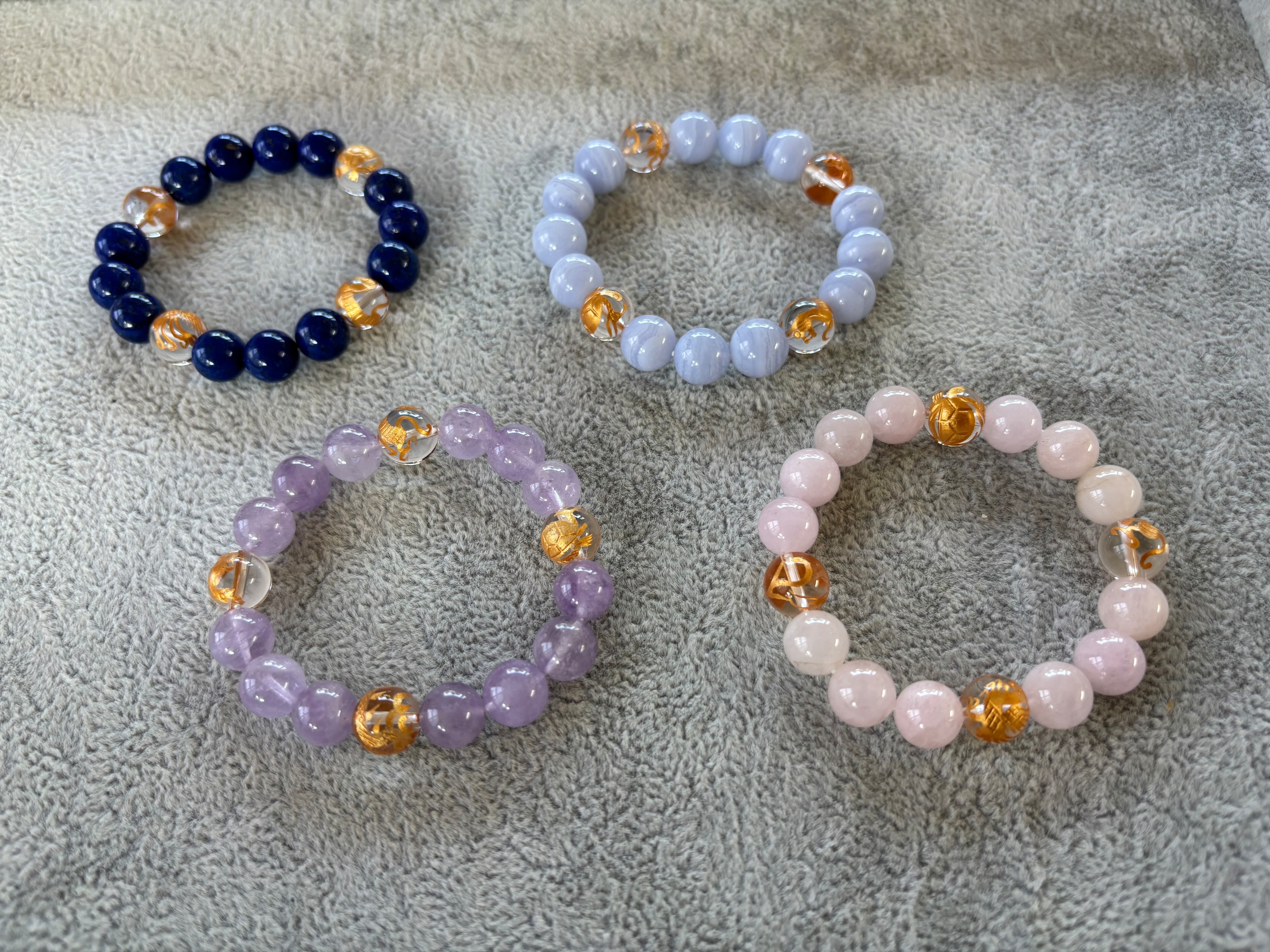 モルガナイトは、その美しいピンクの色合いが持つ優雅さと愛情を象徴しており、心に安らぎをもたらす特別な石です。このブレスレットは、四神のエネルギーを込めたデザインで、毎日をより豊かにするサポートをしています。青龍、白虎、朱雀、玄武の四つの聖獣が持つ特別な力を感じながら、あなたのスタイルを引き立てる素敵な一品です。